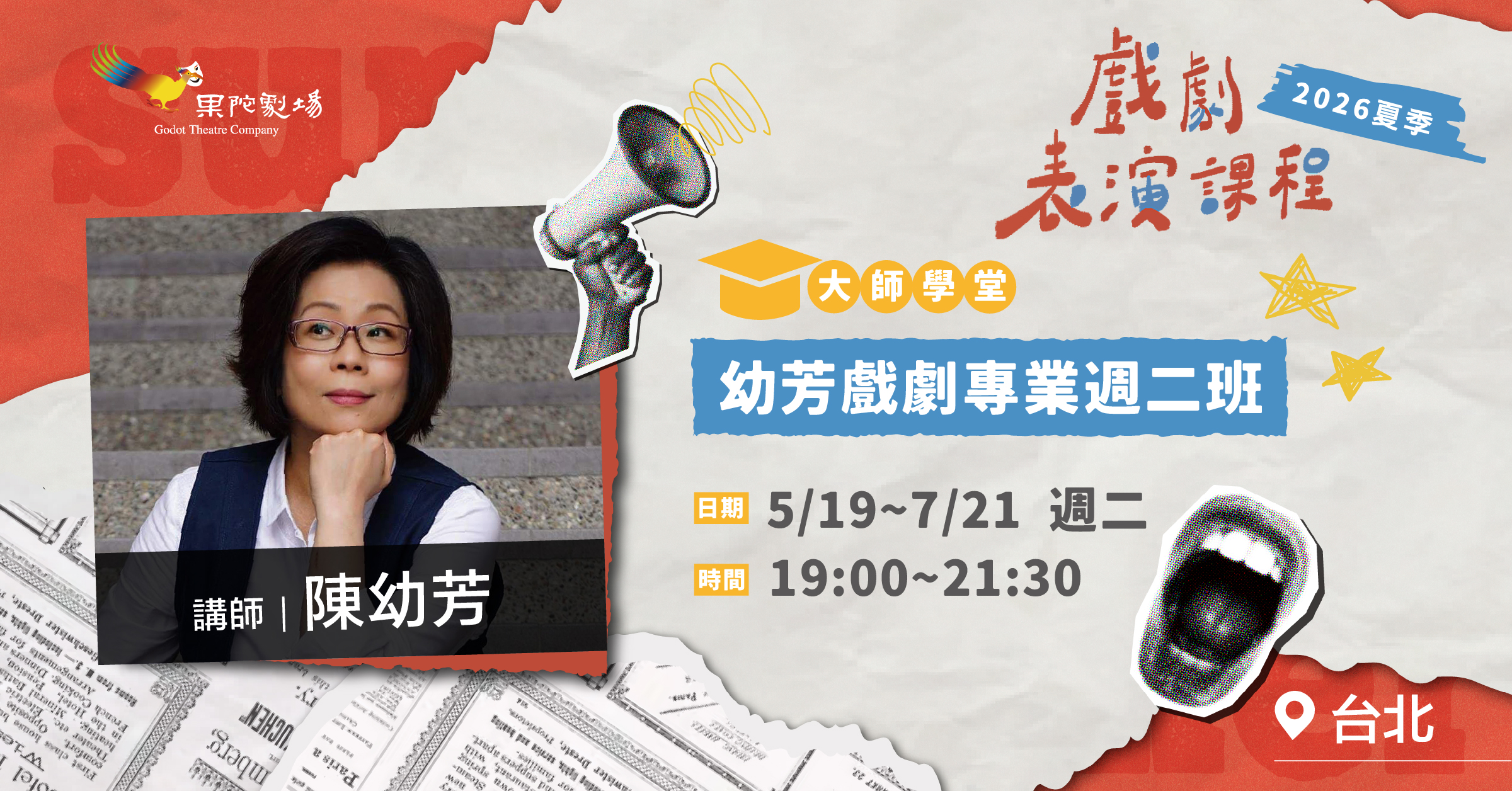 時間:2026年05月19日至07月21日,每週二,晚上19:00~21:30,共10堂