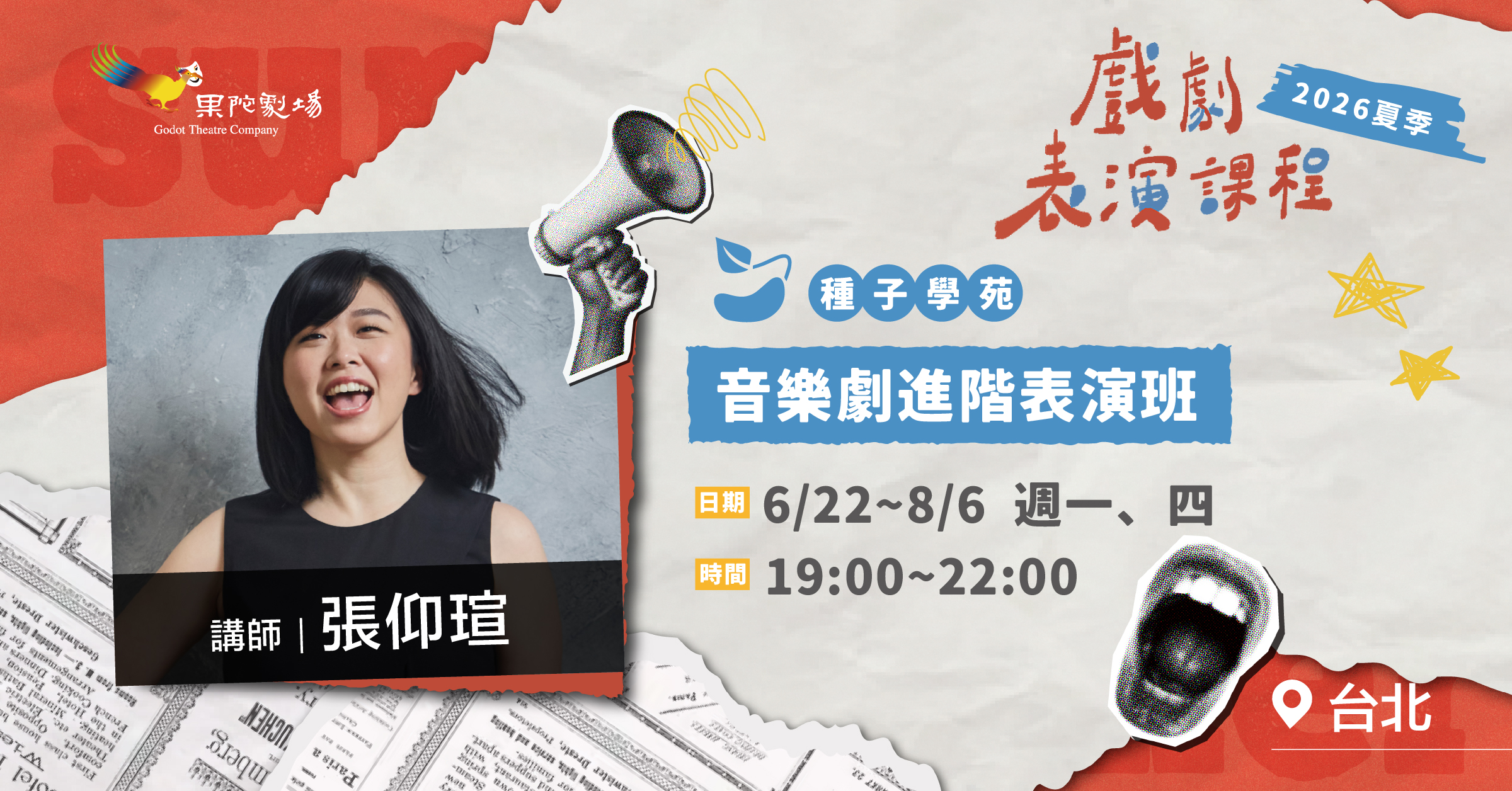對象:16~50歲,《音樂劇表演班》舊學員或有相關戲劇/演出經驗者(非果陀舊生請於備註說明經驗)