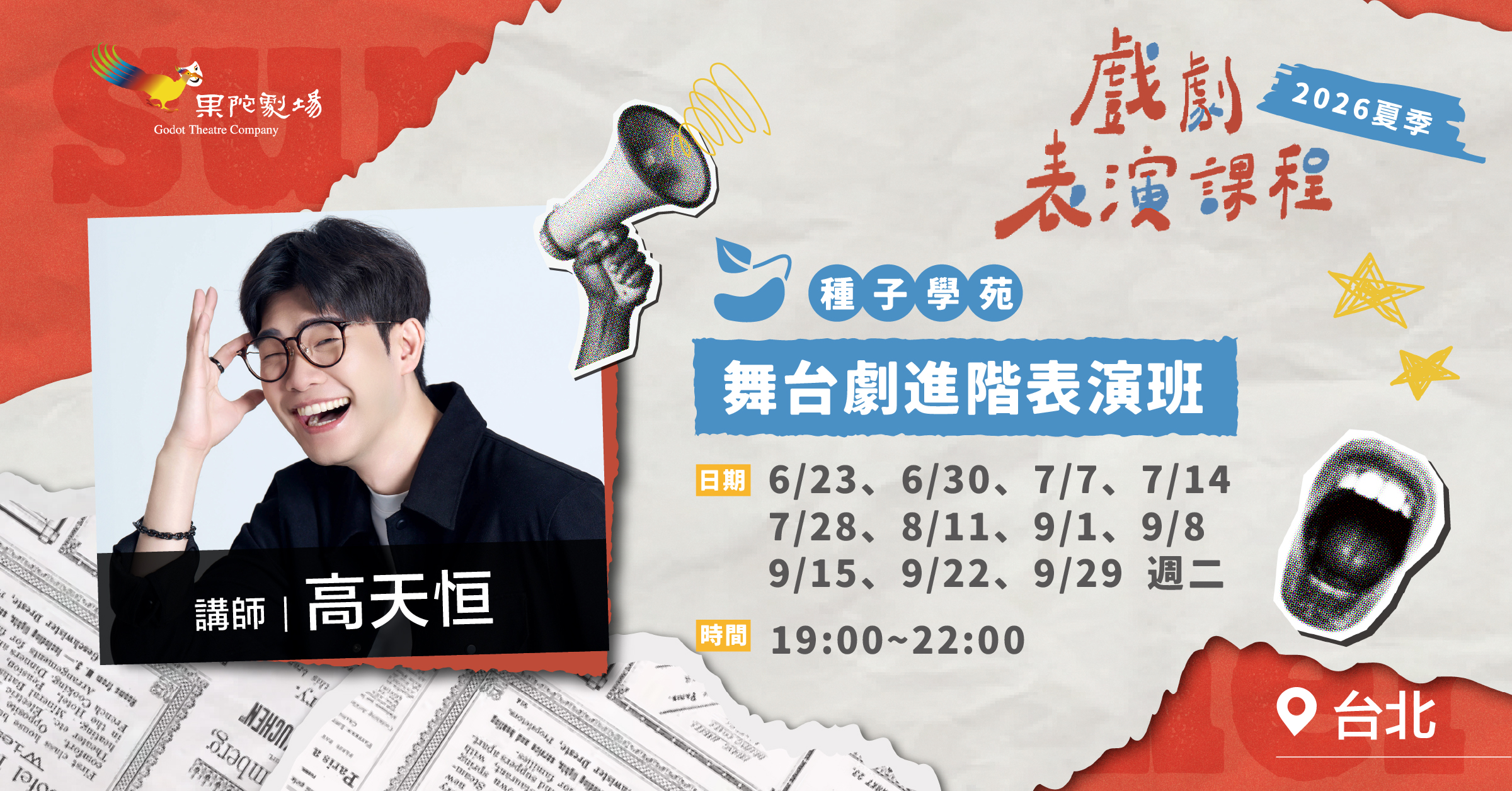 對象:16~50歲,《舞台劇基礎班》舊學員;或有其他相關表演、戲劇課程經驗者(非果陀舊生請於備註註明經歷)