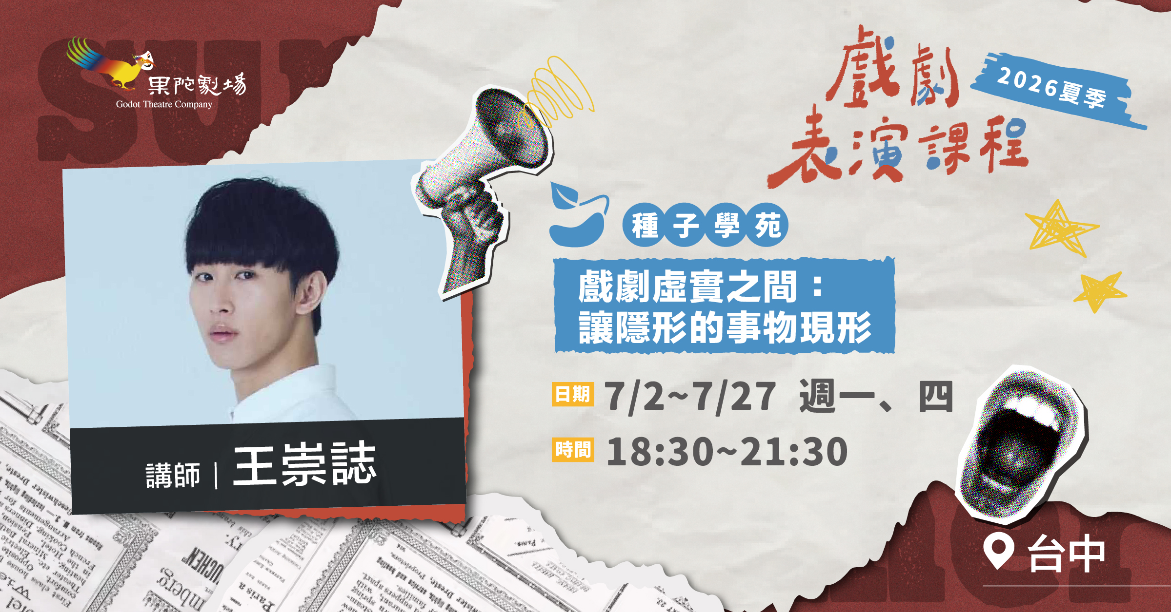 對象:16~55歲,想體驗戲劇表演入門的學生或社會人士